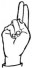 На ћирилици написано ЈЕВРЕМ МЕЧАНИН састоји се из 13 слова [?]. Исписано ћириличном једноручном азбуком за глувонеме: